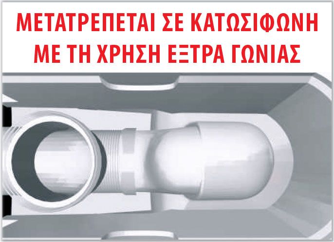 Η λεκάνη μετατρέπεται σε κάτω σιφώνι με τη χρήση γωνίαςς 220 mm.