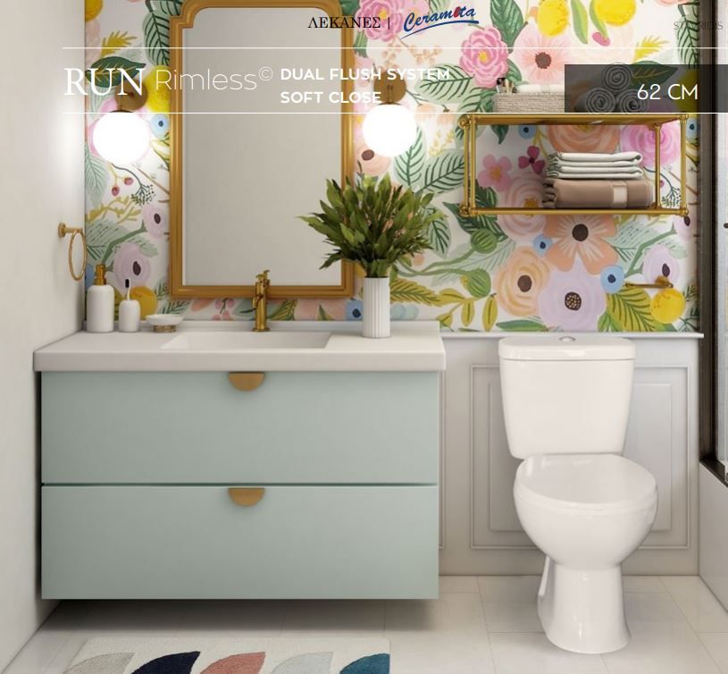 Λεκάνη Rimless Κομπλέ Σετ Χαμηλής Πίεσης Πίσω Σιφώνι Προβολή 62 εκ. Ceramita Run
