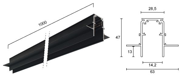 - ✔ Περιγραφή: Μαγνητικό Track Rail Χωνευτό Trimless 1m με Tάπες και Κάλυμμα