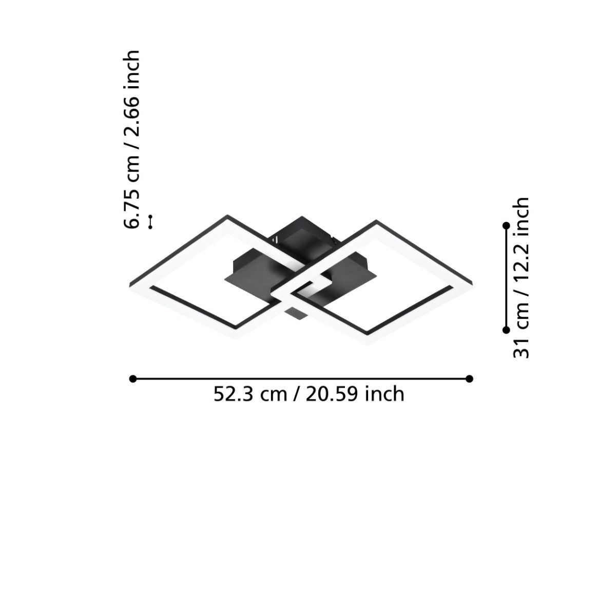Μοντέρνα πλαφονιέρα οροφής της Eglo σε μαύρο χρώμα, από μέταλλο. Διαθέτει ενσωματωμένο LED.
