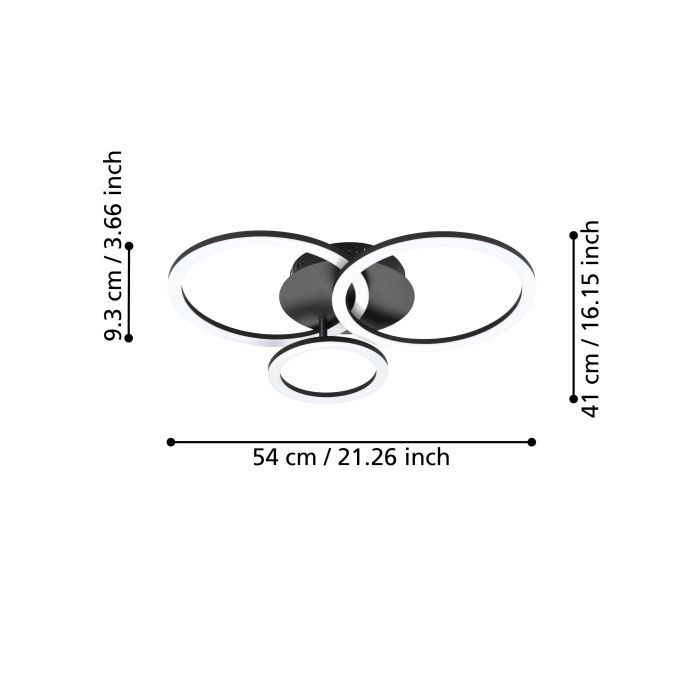 Μεταλλική Πλαφονιέρα Οροφής Μαύρη L54xH9,3cm Led 3000-6500K 4300lm Εφαρμογή-Τηλεχειριστήριο Eglo Parrapos-Z 900321