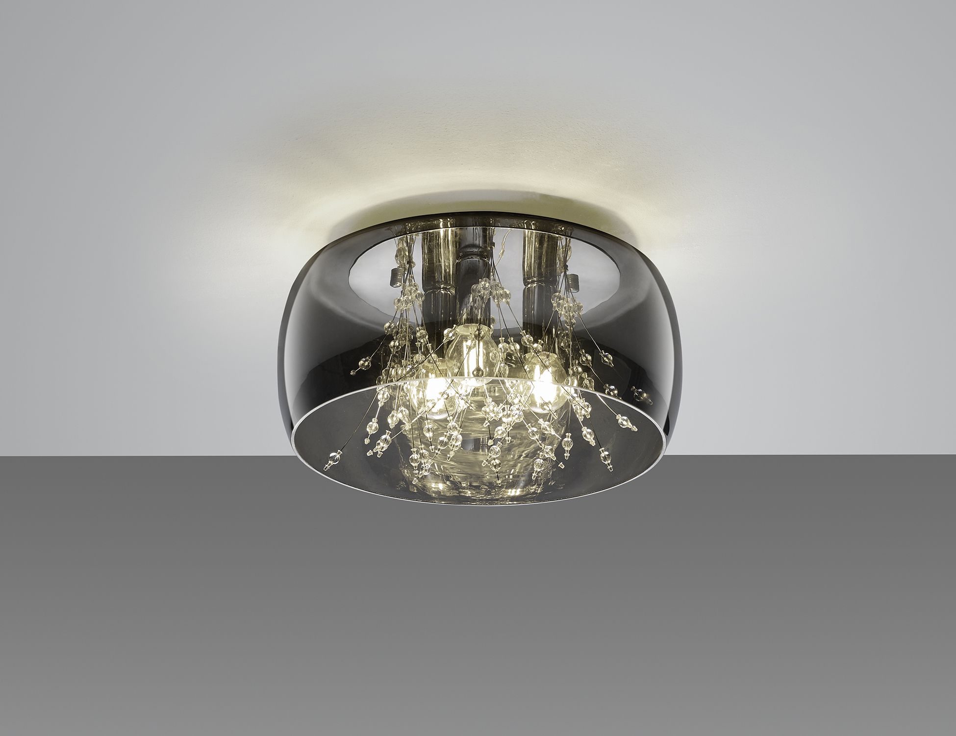 Μοντέρνα πλαφονιέρα οροφής της Trio Lighting σε γκρι χρώμα, από γυαλί. Διαθέτει ντουί για λαμπτήρες E14.