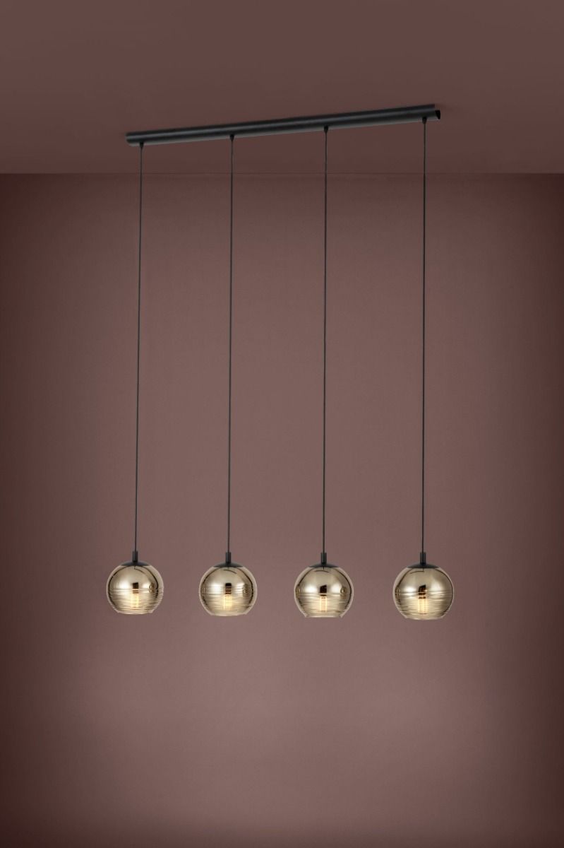 Μοντέρνο Κρεμαστό Φωτιστικό Ράγα 111cm 4xE27 Γυαλί Χρυσαφί Eglo Lemorieta 39686