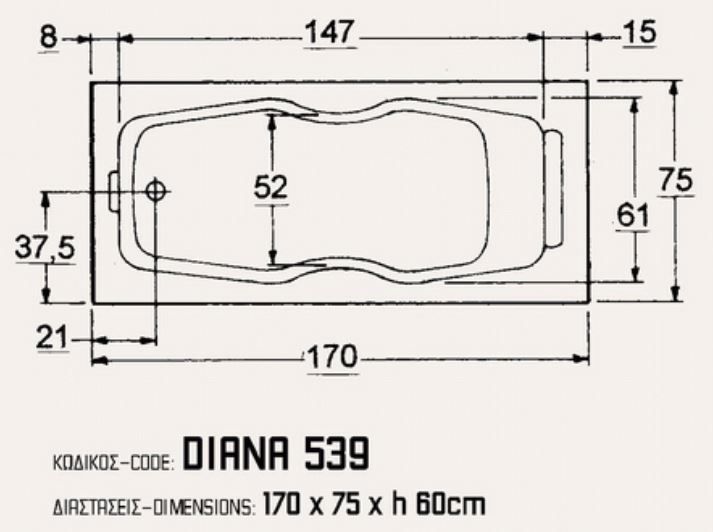 Η μπανιέρα διατίθεται σε διάσταση 170*75 & 160*75 εκ.