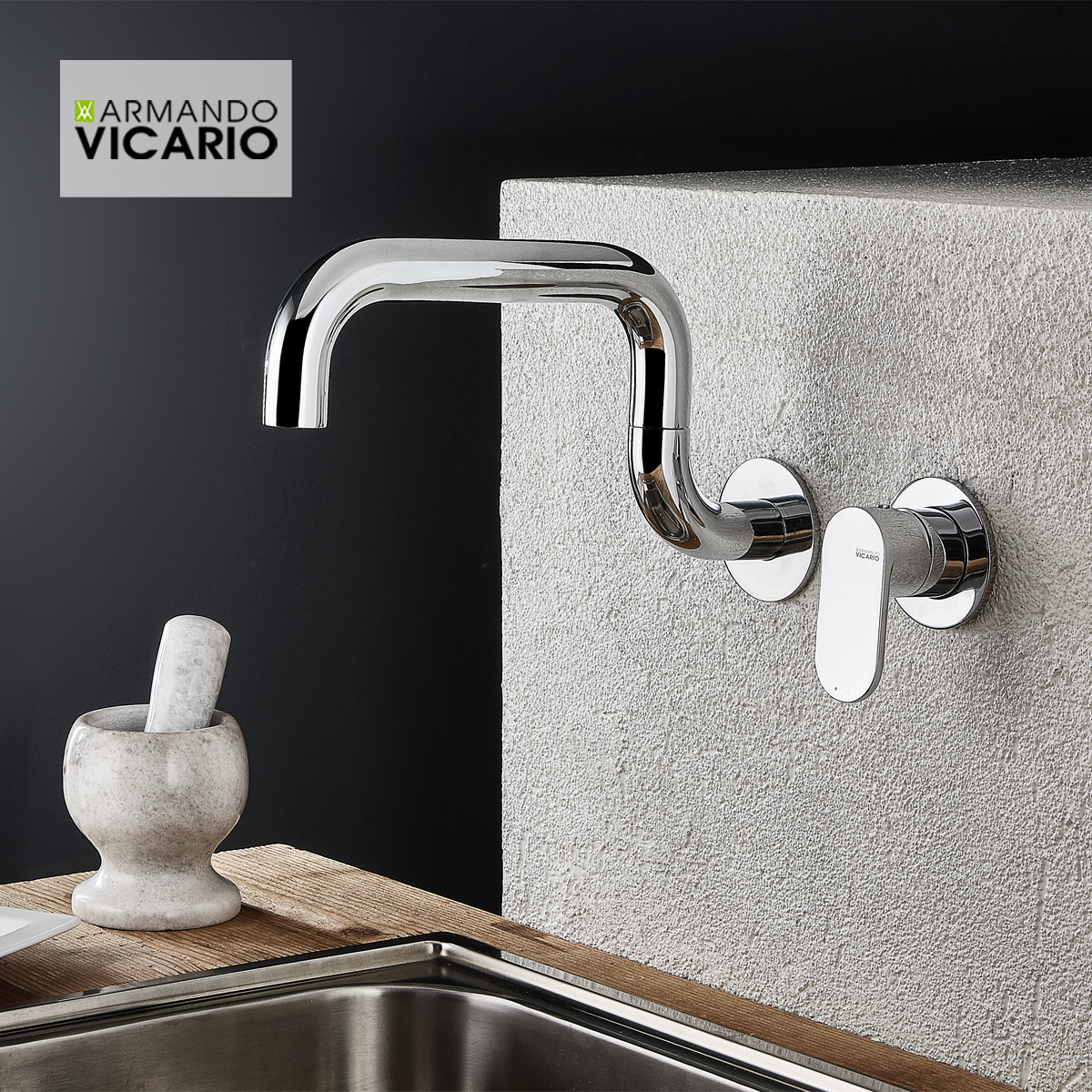 Μπαταρία Κουζίνας Επίτοιχη Χρωμέ Περιστρεφόμενο Ρουξούνι Armando Vicario Laundry 400747-100