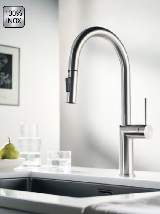 Μπαταρία Κουζίνας Συρόμενο Ντους Shower-Spray Cora Griffon Inox 316L 63630-111