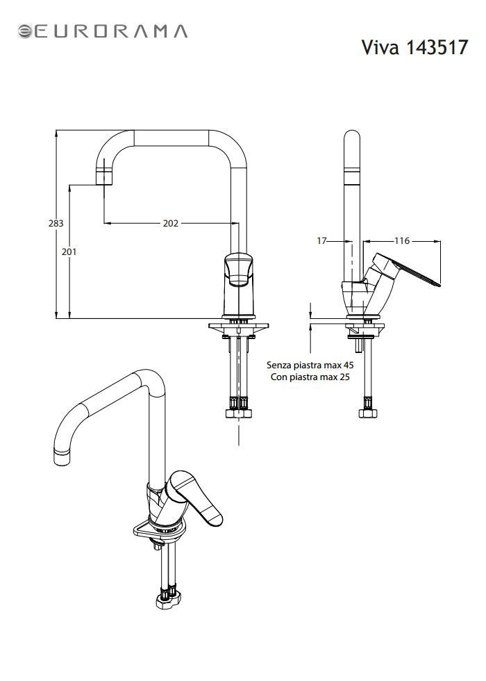 Μπαταρία Νεροχύτη Κουζίνας Viva Eurorama Chrome 143517-100