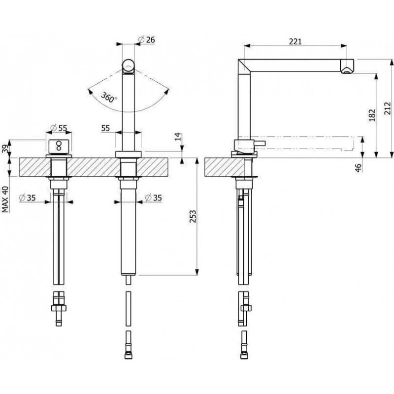 Μπαταρία Κουζίνας Χρωμέ 2 οπών Βυθιζόμενος Κορμός Armando Vicario Cono 10530-100