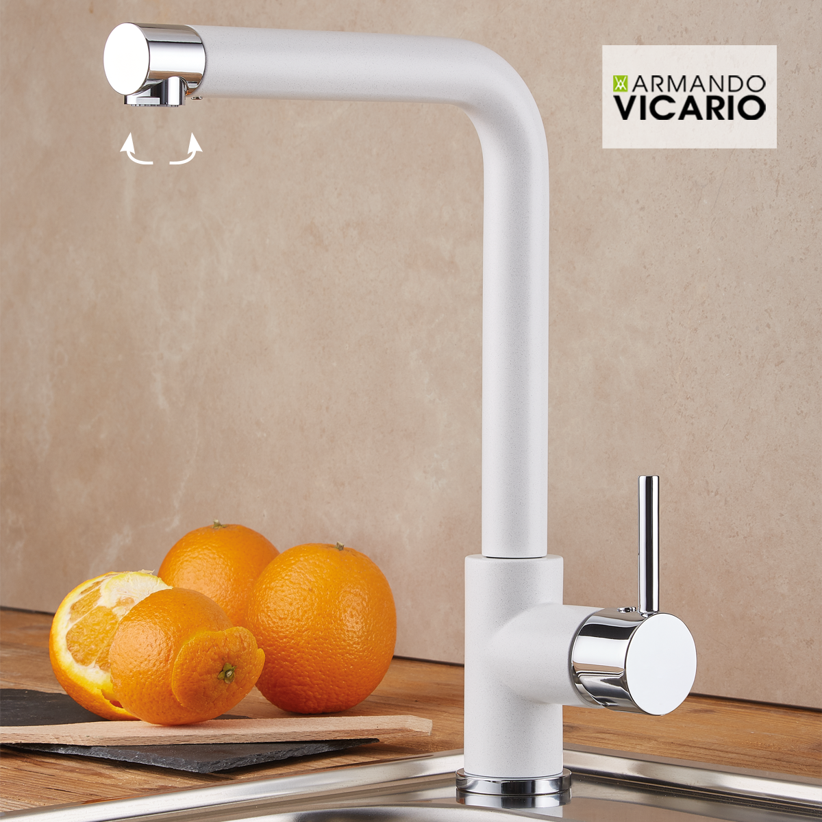 Μπαταρία Κουζίνας με Περιστρεφόμενο Ρουξούνι Cristalite Granite Superwhite Armando Vicario Fluo 18510-1301