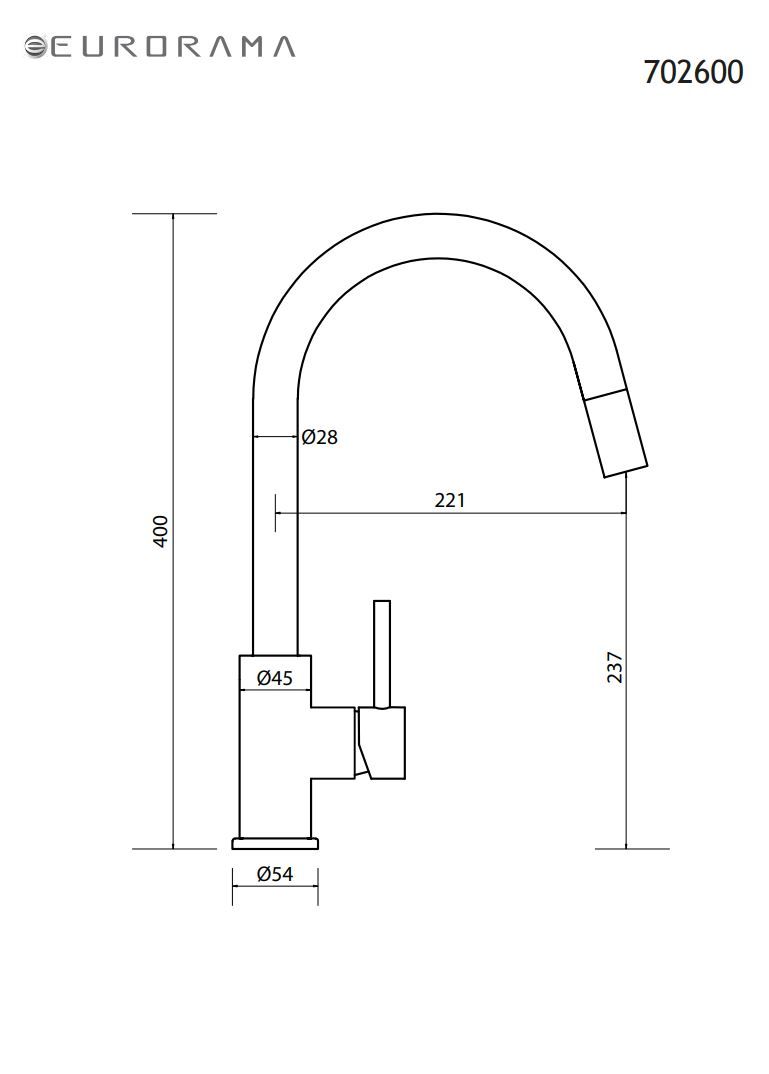 Μπαταρία Νεροχύτη Κουζίνας Inox με περιστρεφόμενο ρουξούνι με συρόμενο ντους Eurorama Inox 702600-111