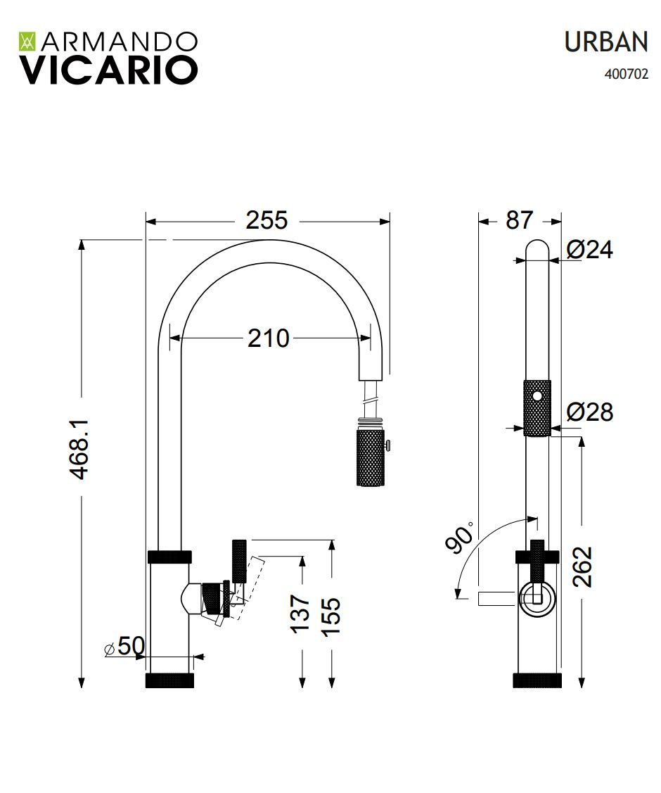 Μπαταρία Νεροχύτη Natural Brass Περιστρεφόμενο ρουξούνι με συρόμενο ντους 2 Λειτουργιών (Shower-Spray) Armando Vicario Urban 400702-225