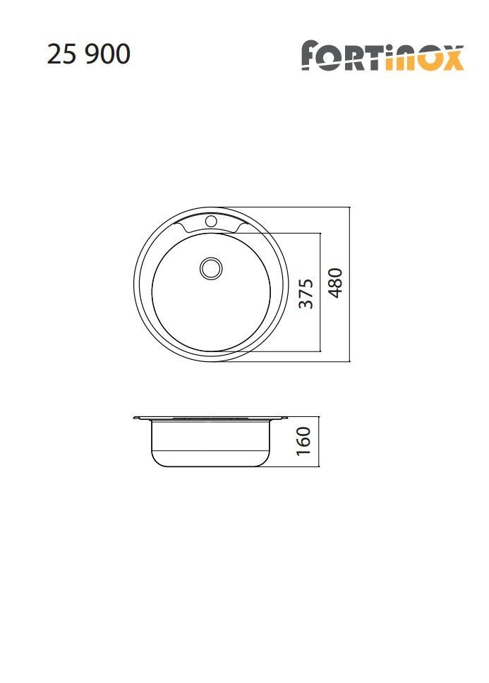 Νεροχύτης Ø45 εκ. Ένθετος για ερμάριο 45 εκ., Ανοξείδωτος Χάλυβας Fortinox Valey 25900