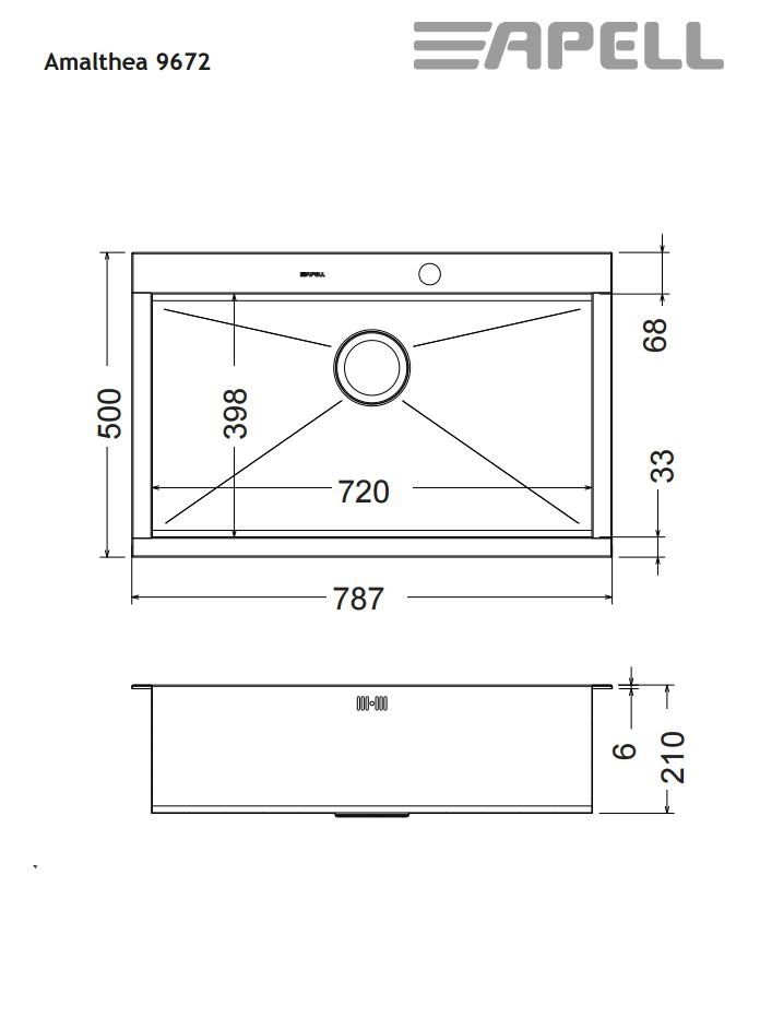 Νεροχύτης Κουζίνας Ανοξείδωτος Amalthea 79x50 Αpell Inox Λείο 9672-110