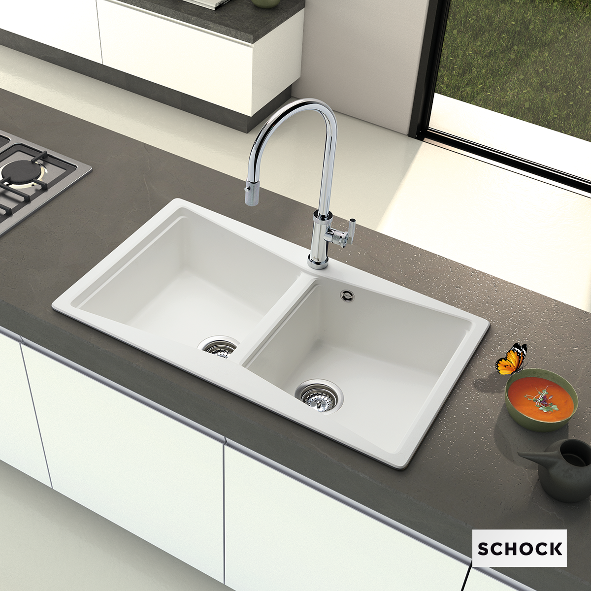 Νεροχύτης Κουζίνας Γρανίτη Element 86x50 Schock Cristalite SuperWhite Granite 31290-1301