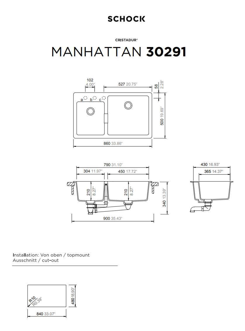 Νεροχύτης Κουζίνας Γρανίτη Manhattan 86x50 Schock Cristalite Everest Granite 30291-1511