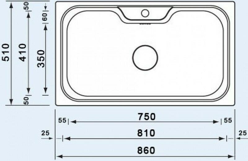 Νεροχύτης Ανοξείδωτος Λείος 86*51 εκ. Ένθετος Ερμάριο 80 εκ.Sanitec Eureca 11743