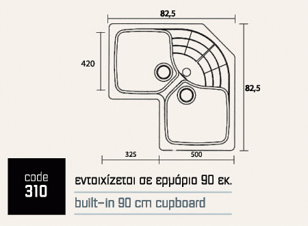 Νεροχύτης Κουζίνας Ένθετος 83*83*50 cm Ερμάριο 90 εκ. Granite Grey Sanitec Libra 310