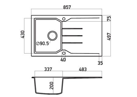 Νεροχύτης Κουζίνας Γρανίτης 86*50 εκ. Χρώμα Ocra Ένθετος ή Υποκαθήμενος ερμάριο 40 εκ. Sanitec 805