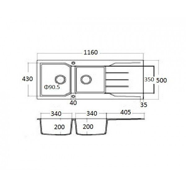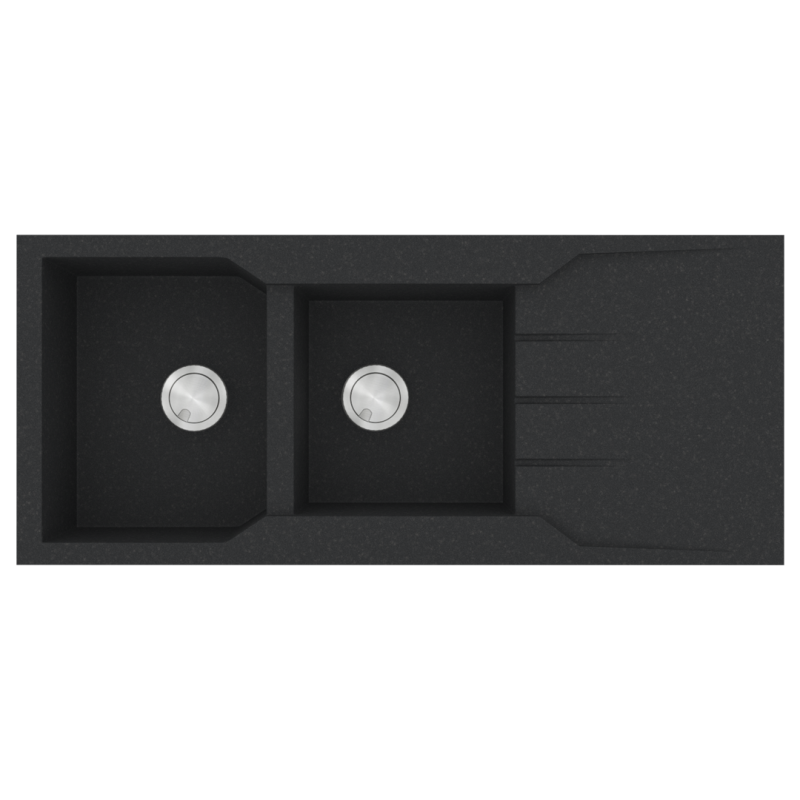 Νεροχύτης Κουζίνας Γρανίτης 116x50cm Ένθετος Eρμάριο 80cm 2 Γούρνες & Πoδιά Sanitec 801-36-Grafite