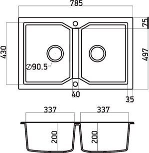 Ιδιαίτερα δημοφιλής σχεδιασμός με 2 όμοιες γούρνες. Εξωτερικές διαστάσεις 78,5cm Χ 49,7cm & μέγιστο βάθος γούρνας 20cm.