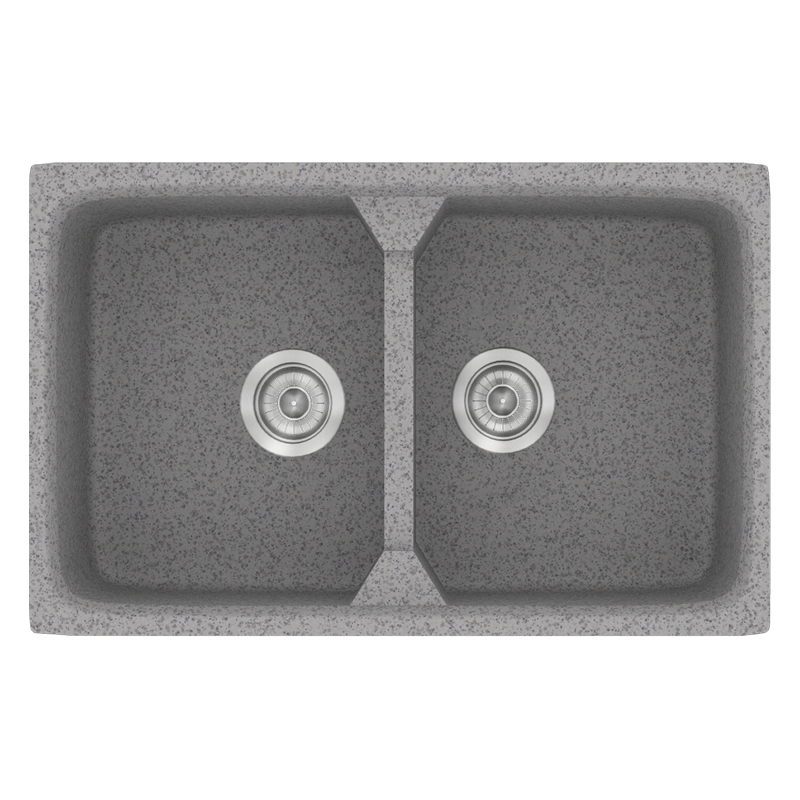 Νεροχύτης Κουζίνας Συνθετικός 78x51cm 2 Γούρνες Ένθετος Eρμάριο 80cm Sanitec Classic 318-04-Granite-Grey