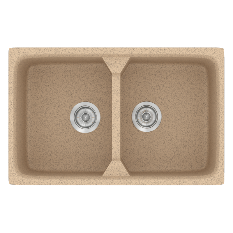 Νεροχύτης Κουζίνας Συνθετικός 78x51cm 2 Γούρνες Ένθετος Eρμάριο 80cm Sanitec Classic 318-10-Granite-Beige