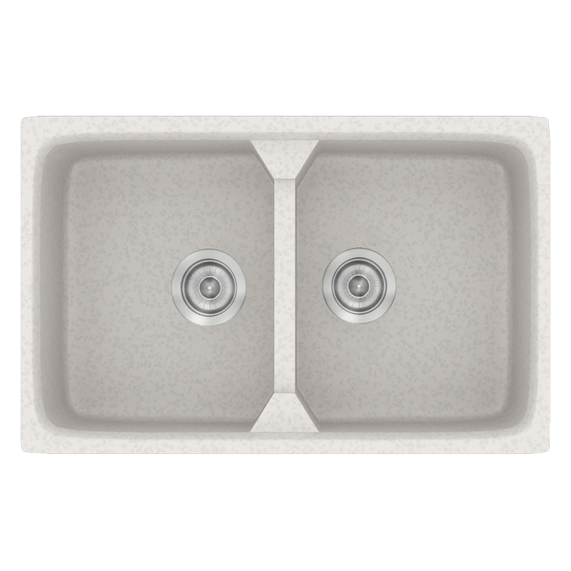 Νεροχύτης Κουζίνας Συνθετικός 78x51cm 2 Γούρνες Ένθετος Eρμάριο 80cm Sanitec Classic 318-14-Metallic-Ice