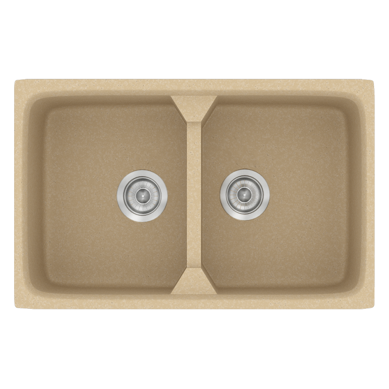 Νεροχύτης Κουζίνας Συνθετικός 78x51cm 2 Γούρνες Ένθετος Eρμάριο 80cm Sanitec Classic 318-45-Granite-Cappuccino