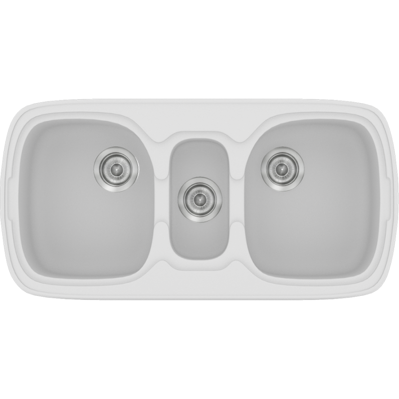 Νεροχύτης Κουζίνας Συνθετικός 97x51cm Ένθετος σε ερμάριο 100cm τρεις γούρνες Sanitec Classic 303-00-White