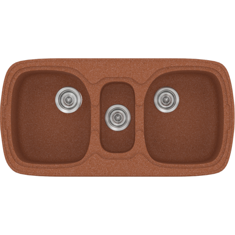 Νεροχύτης Κουζίνας Συνθετικός 97x51cm Ένθετος σε ερμάριο 100cm τρεις γούρνες Sanitec Classic 303-20-Granite-Terracotta