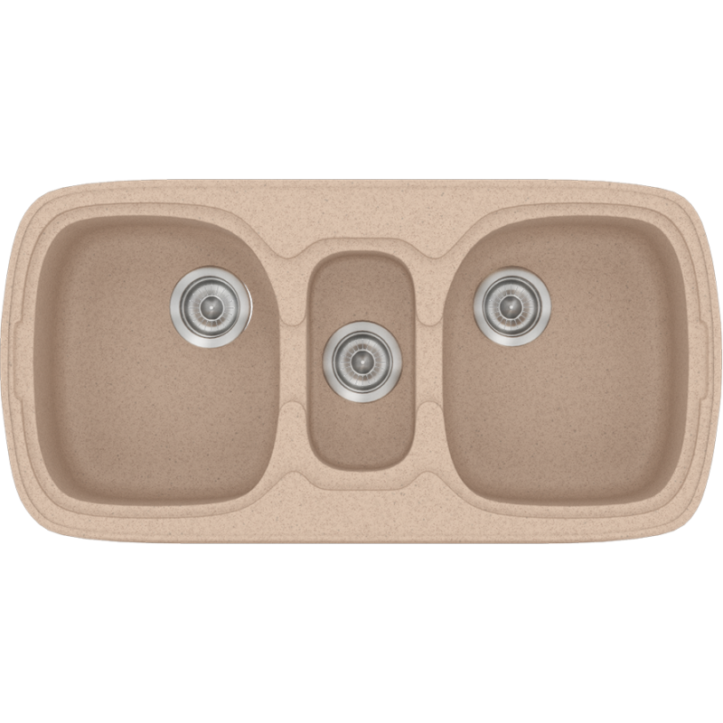 Νεροχύτης Κουζίνας Συνθετικός 97x51cm Ένθετος σε ερμάριο 100cm τρεις γούρνες Sanitec Classic 303-21-Granite-Sand