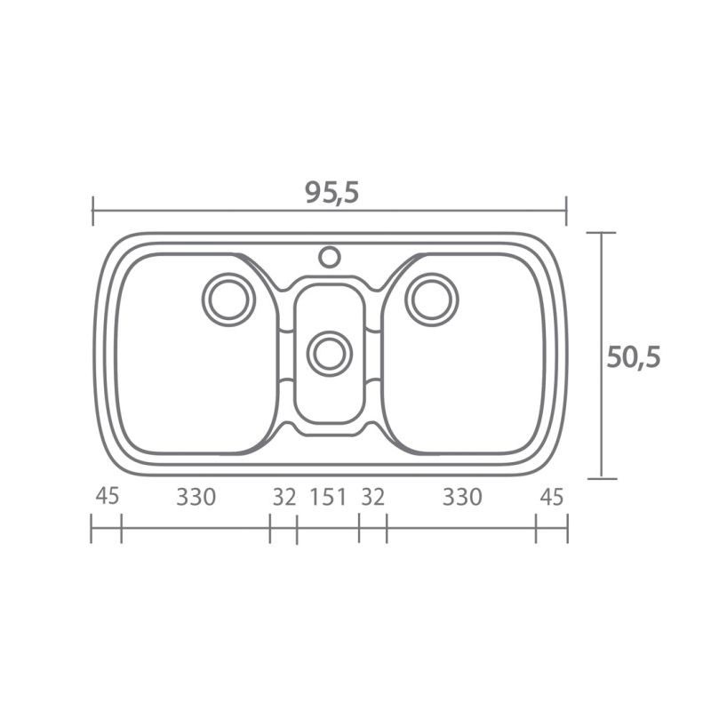 Περιγραφή: Νεροχύτης ένθετος αντιστρεφόμενος με τρεις γούρνες