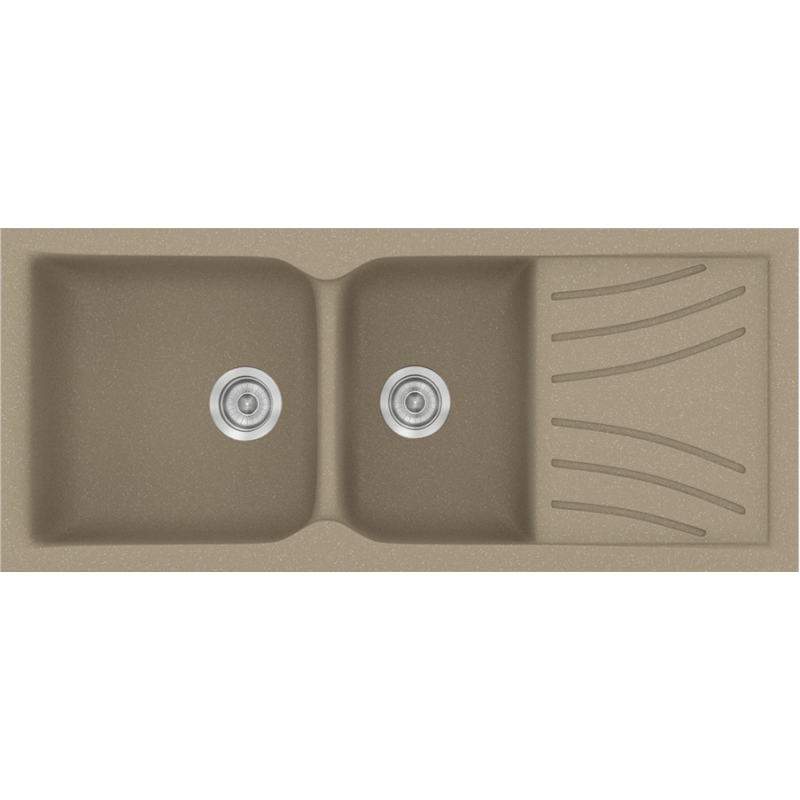 Νεροχύτης Κουζίνας Συνθετικός Granite Taupe 115*50 εκ. Ένθετος Eρμάριο 80 εκ. Δύο γούρνες & Ποδιά Sanitec Electric 323