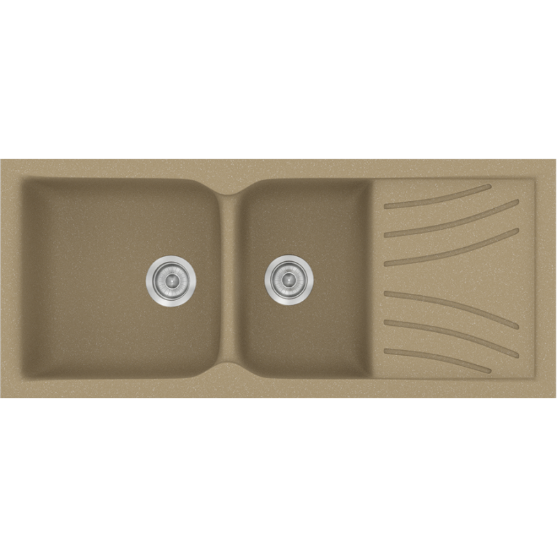 Νεροχύτης Κουζίνας Συνθετικός Metallic Cream 115*50 εκ. Ένθετος-Υποκαθήμενος Eρμάριο 80 εκ. Δύο γούρνες & Ποδιά Sanitec Electric 323