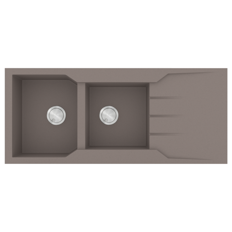 Νεροχύτης Κουζίνας 116x50cm Ένθετος Eρμάριο 80cm Δύο Γούρνες & Πoδιά Sanitec Ultra Granite 801-34-Sienna
