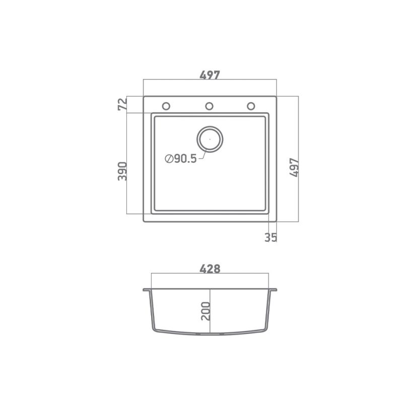 Εντοιχίζεται σε ερμάριο 50cm και συνοδεύεται από βαλβίδα αποχέτευσης με σύστημα υπερχείλισης & το αντίστοιχο σιφόν.