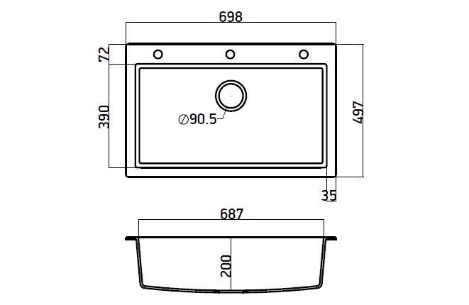 Νεροχύτης Κουζίνας 70x50cm Ένθετος ερμάριο 70cm Γρανίτης Sanitec Ultra Granite 815-33-Nero