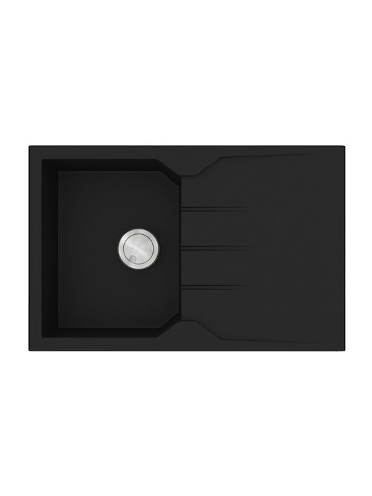 Νεροχύτης Κουζίνας 79x50cm 1 Γούρνα & Ποδιά Ένθετος Ερμάριο 40cm Sanitec Ultra Granite 807-33-Nero