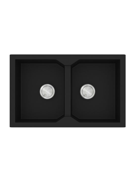 Νεροχύτης Κουζίνας 79x50cm 2 Γούρνες Ένθετος Eρμάριο 80cm Sanitec Ultra Granite 806-33-Nero