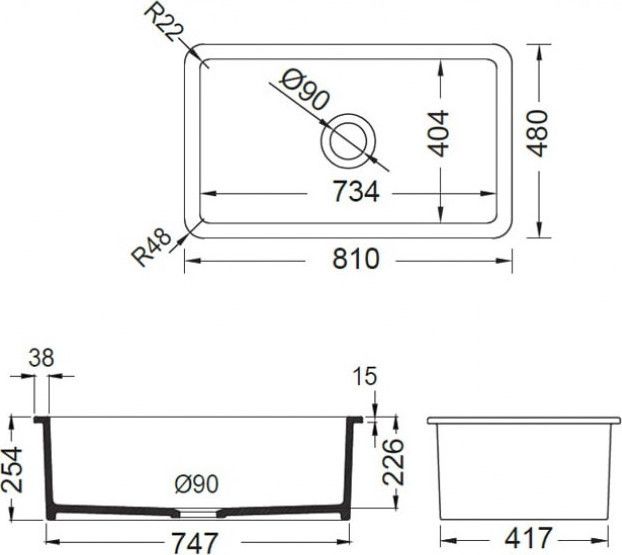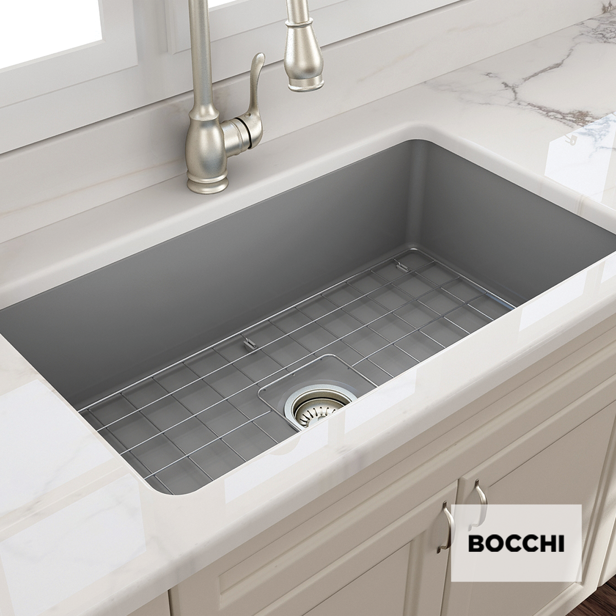 Νεροχύτης Κουζίνας Πορσελάνης Ένθετος - Υποκαθήμενος 81x48 Bocchi Black Matt 1362-401