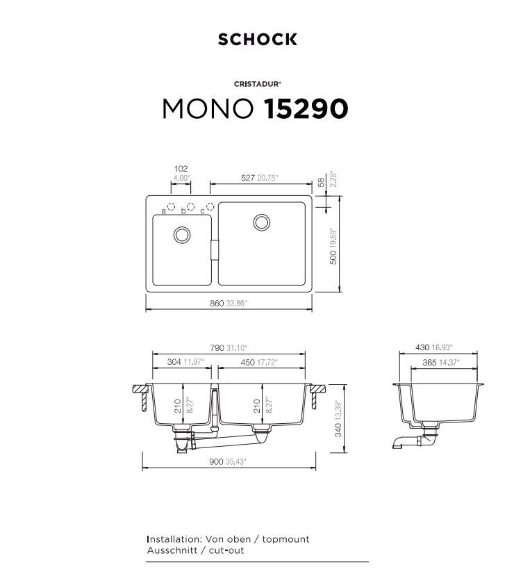 Νεροχύτης Κουζίνας Γρανίτη Mono 86x50 Schock Cristadur Polaris Granite 15295-1302