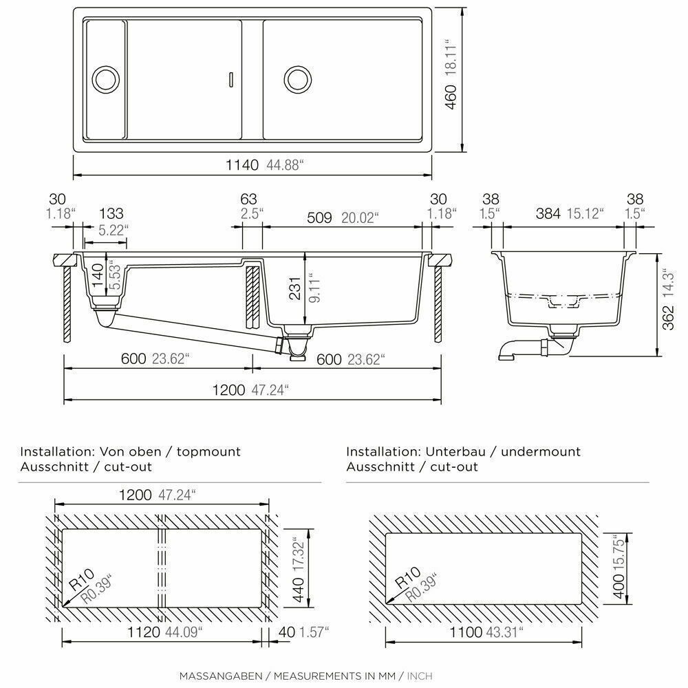 | Διάσταση Νεροχύτη (εκ.) | 114 x 46 |
