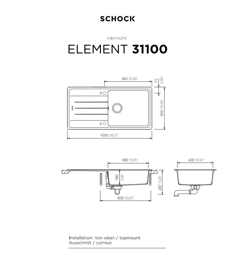 Νεροχύτης Ένθετος M100xΠ50 εκ. Γρανίτης Sabbia Schock Cristalite Element 31100-1501