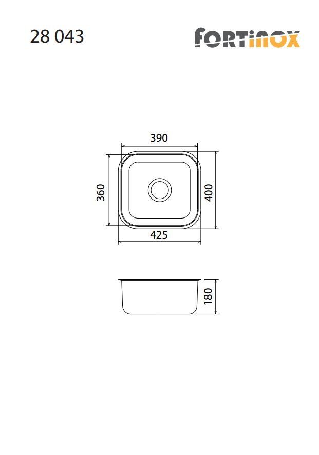 Νεροχύτης Κουζίνας Ανοξείδωτος Υποκαθήμενος 42,5x40 Fortinox Inox Λείο 28043-110
