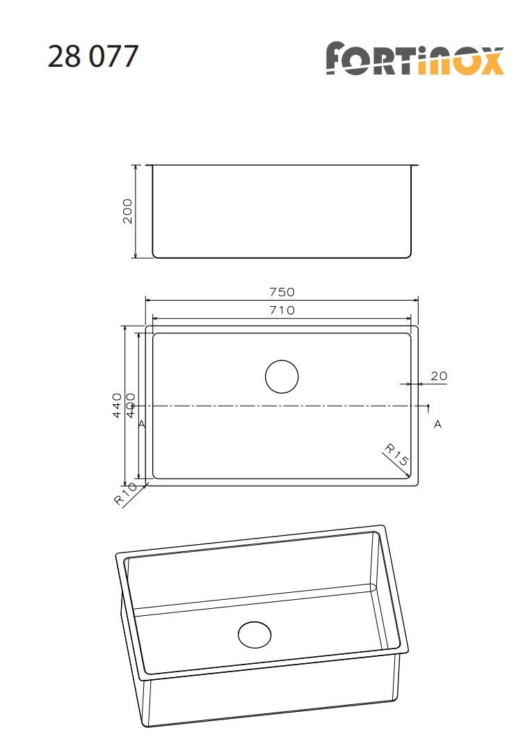 Νεροχύτης Κουζίνας Ανοξείδωτος Squadro 75x44 Fortinox Inox Λείο 28077-110