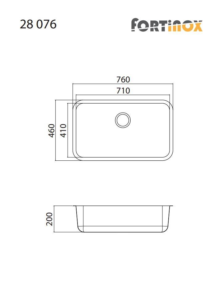 Νεροχύτης 76x46εκ. Υποκαθήμενος για ερμάριο 80 εκ., Λείος, Ανοξείδωτος Χάλυβας Fortinox Valey 28076-110