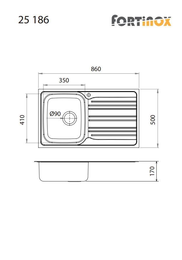 Νεροχύτης Κουζίνας Ανοξείδωτος Valley 86x50 Fortinox Inox Λείο 25186-110