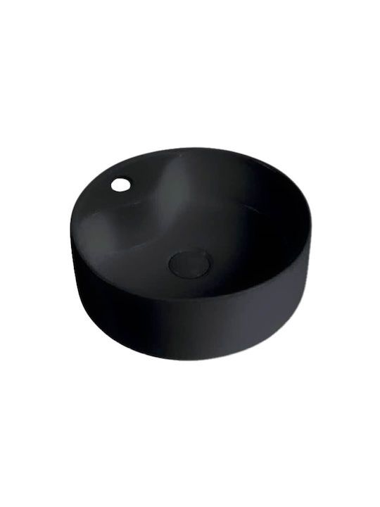 Νιπτήρας Επικαθήμενος Ø46x15,5cm με οπή Μπαταρίας Πορσελάνη Ceramita Ring Black Matt