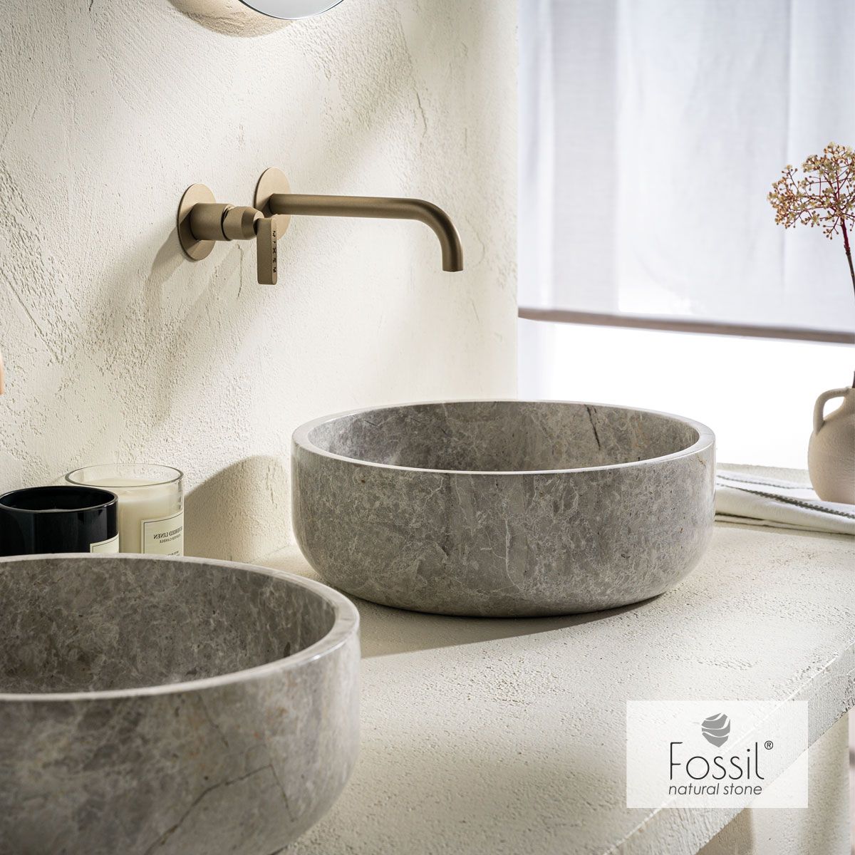 Νιπτήρας Μαρμάρινος Thalo Φ39 h.14 Fossil Tundra Grey DR39-423
