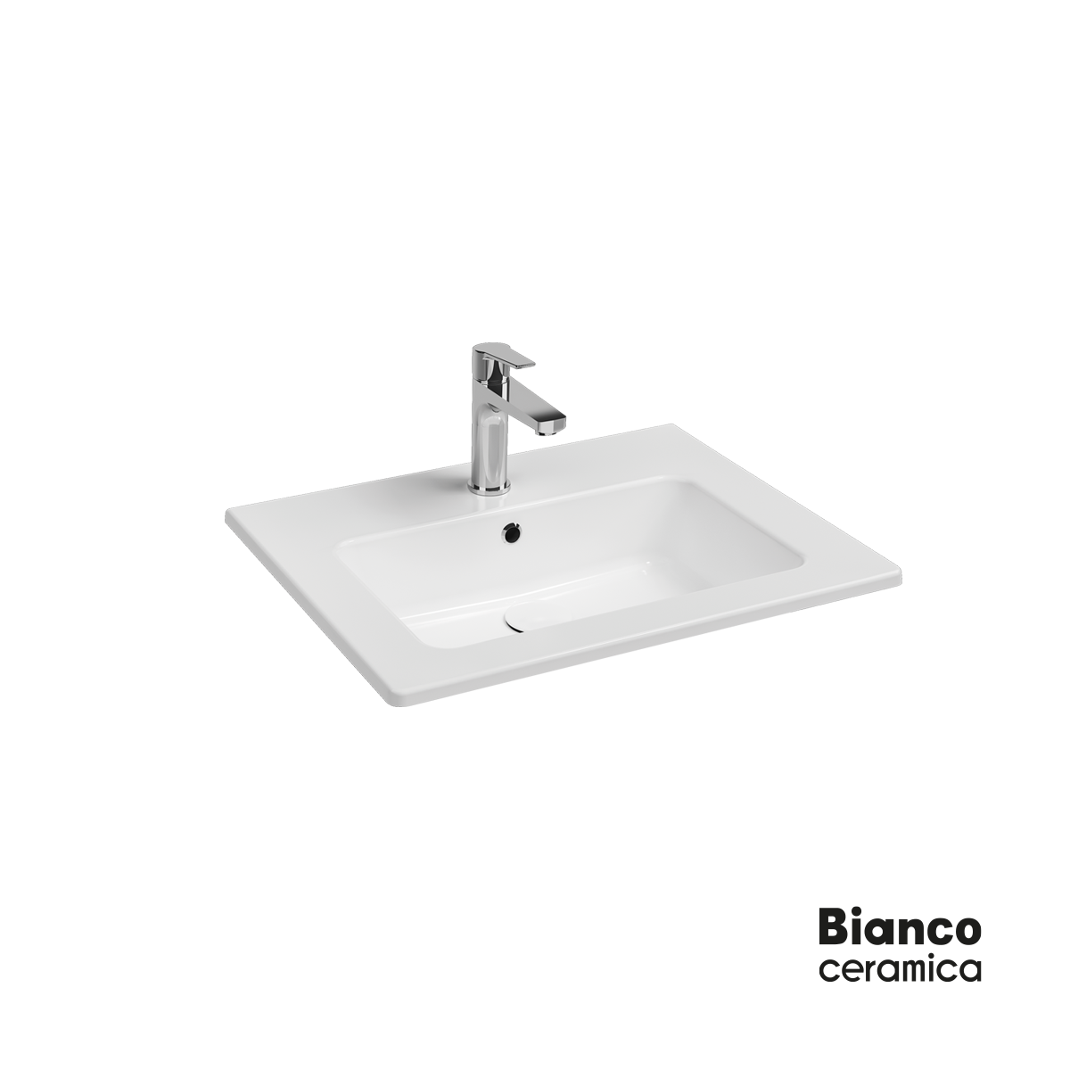Νιπτήρας Πορσελάνης Flat 62,5x46,5 (1 οπή) Bianco Ceramica White 36060-300